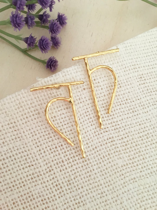 Golden Textured Raw Stone Cluster Pearl Drop Earring