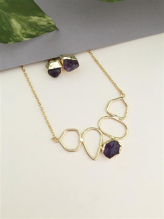 Golden Three Raw Stone Chain Pendant Set