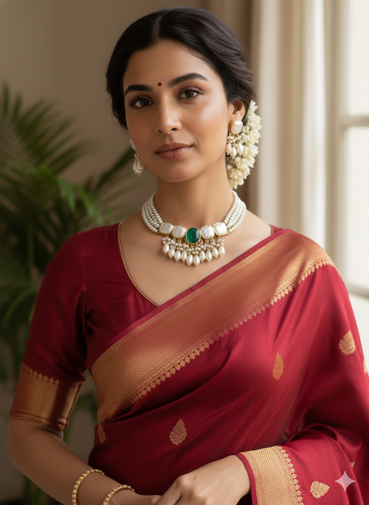 Elegant Pearl & Stone Choker Necklace Set with Earrings