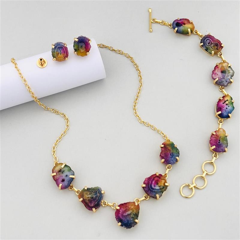 6pc Solar Quartz Set with Finger Ring, Bracelet, Necklace and Studs