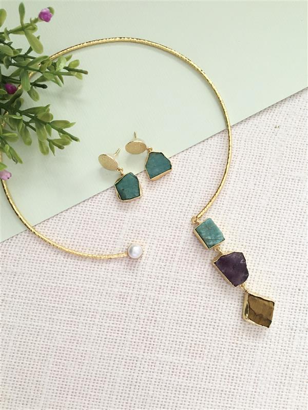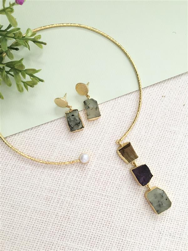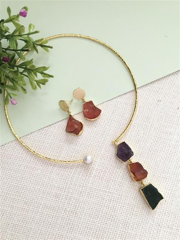 Asymmetrical Raw Stone Choker Set