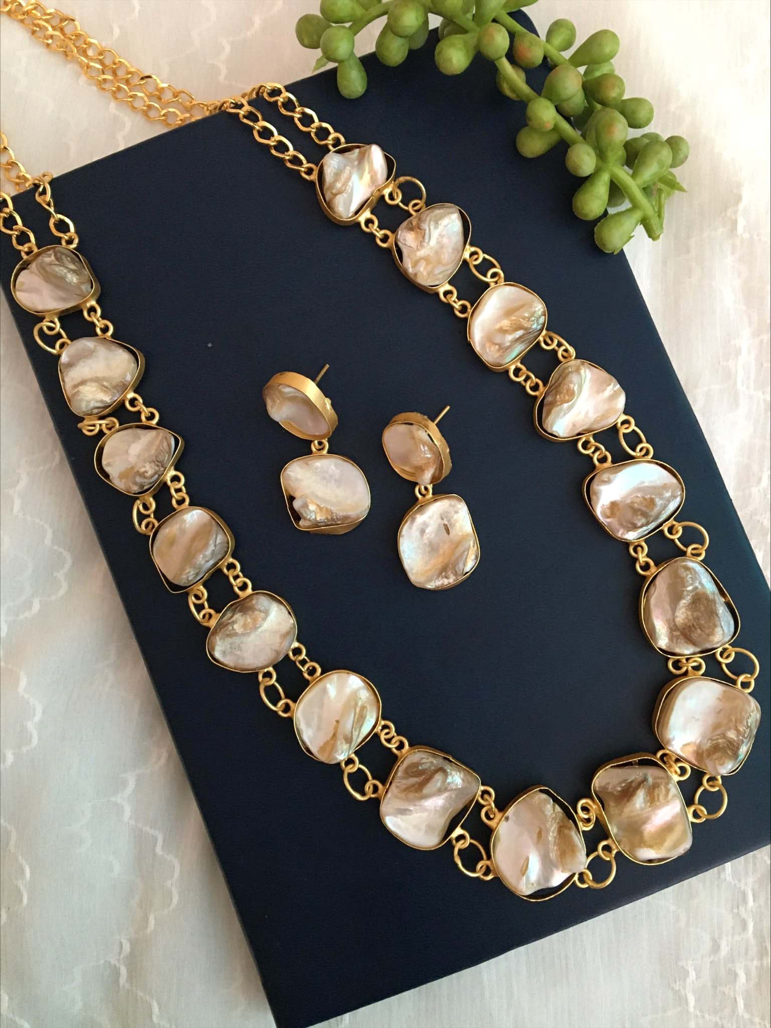 This long necklace set is a new pattern of chain well aligned with white beads. It provides full coverage and will add up elegance to your look. You can wear it with any ethnic, Indo-western or western outfit. Just add this pair to your attire and you will have an amazing look. Include this in your jewellery and glam up your special days.