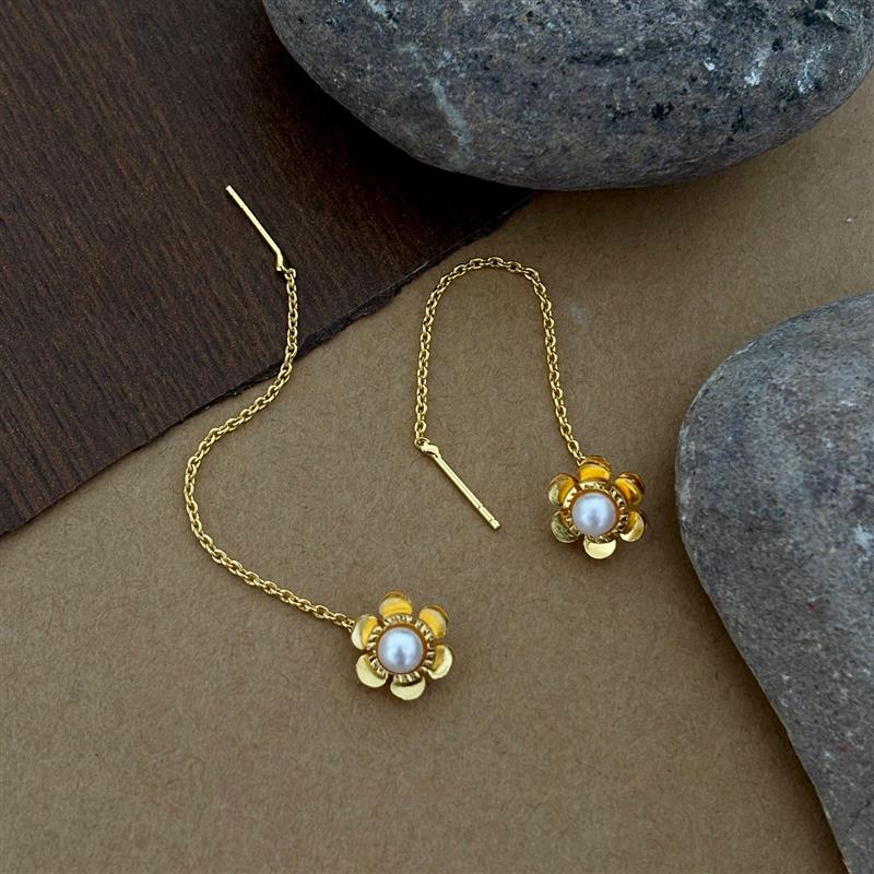 Floral Pearl Threader Earrings