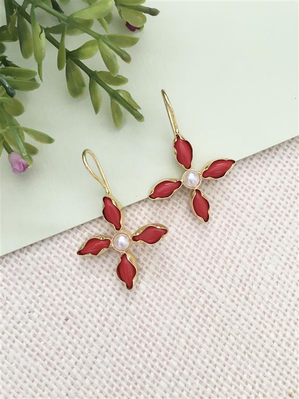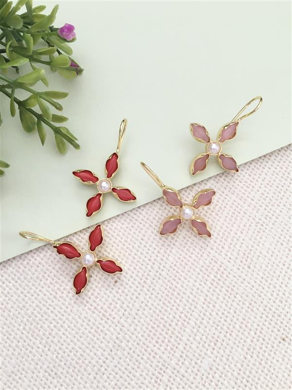 Available in a sweet shade of blush pink and a vibrant pop of cranberry red, these earrings offer a unique and feminine accent to any look. The lightweight construction and secure fish hook closure make them comfortable for all-day wear. Whether you're attending a garden party or simply adding a hint of color to your daily attire, these earrings are a beautiful and versatile choice.