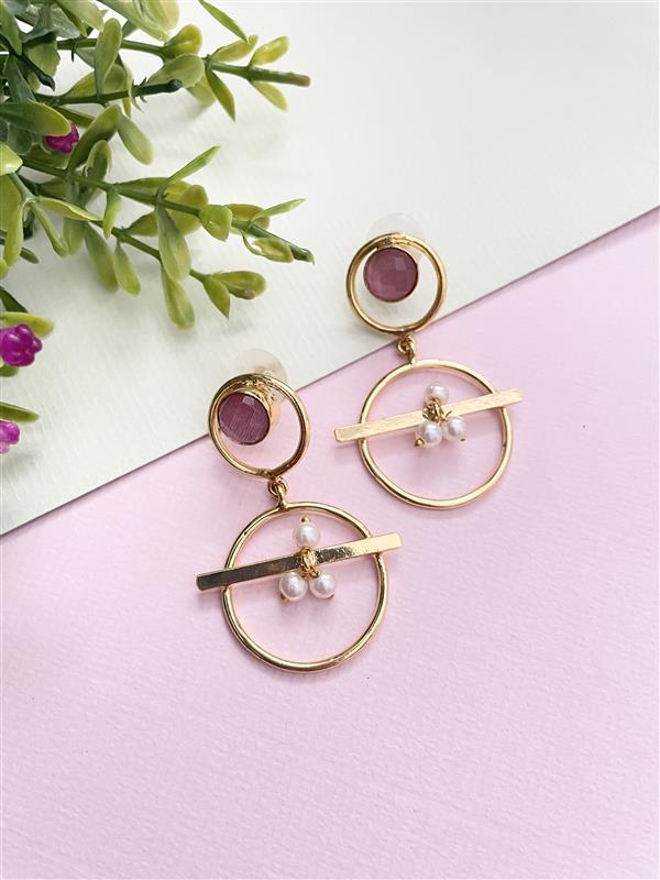 The Garima Double Circle Drop Earrings feature a chic, layered design with two interlocking circles. Elegant and lightweight, they’re perfect for adding a contemporary touch to any outfit.