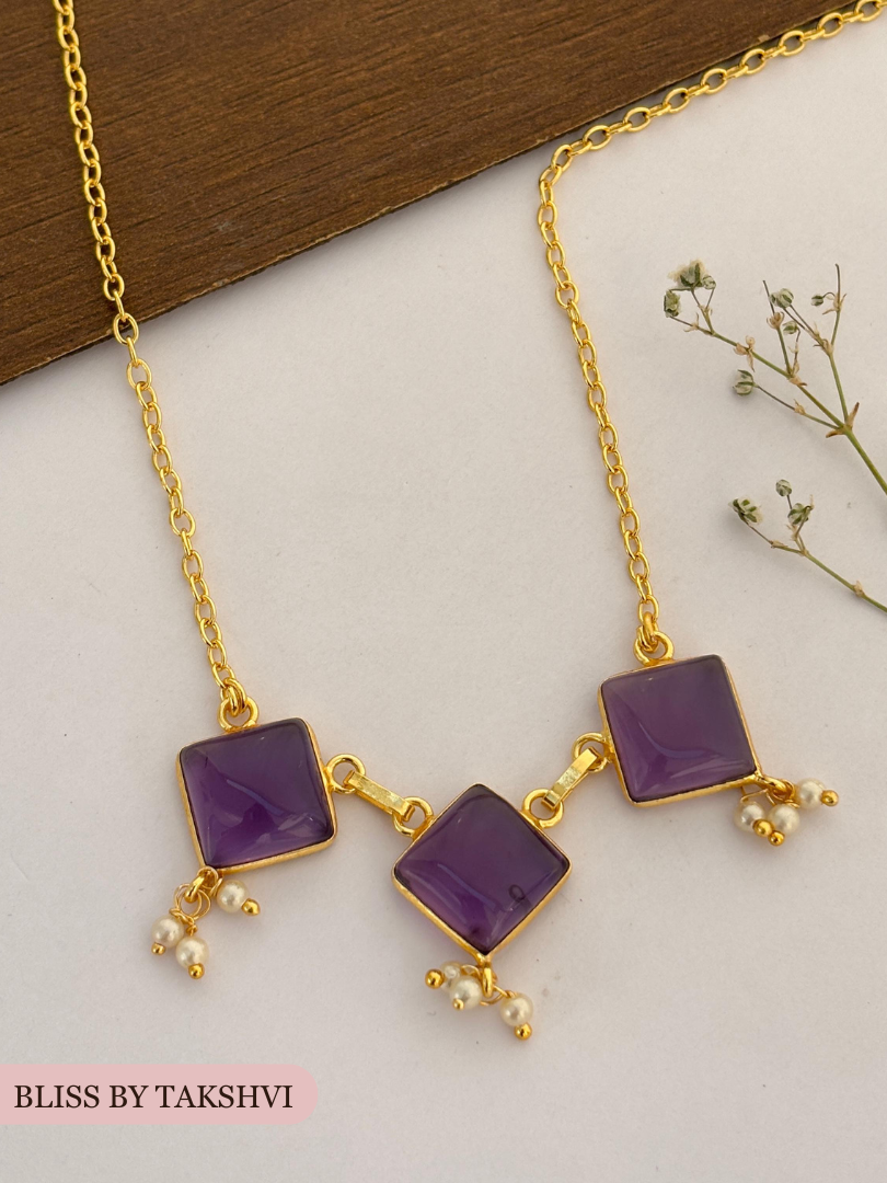 Turn heads with timeless elegance in the Glossy Stone Pendant with Pearl Hangings. This exquisite piece features radiant, glossy stones set in a refined design, beautifully accented with delicate pearl drops that sway with every move. The combination of shimmering stones and graceful pearls creates a balanced blend of luxury and femininity—perfect for festive occasions, weddings, or a touch of everyday glam.