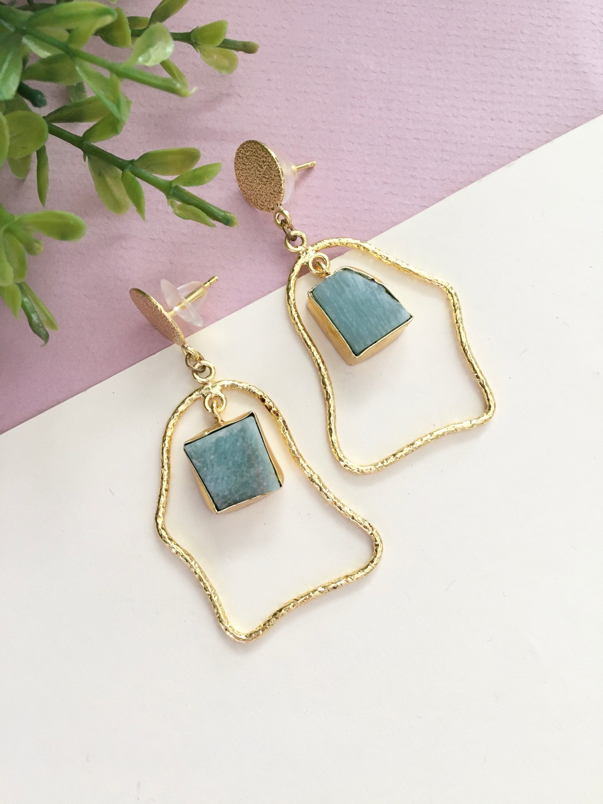 Product Name: Ihita Golden Rough Stone Geometric Drop Earrings