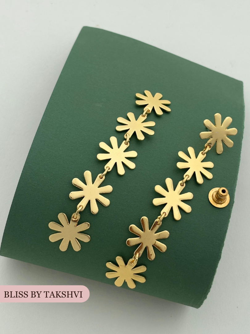 Make a graceful statement with these enchanting Brass Long Flower Hanging Earrings. Featuring delicately crafted floral motifs cascading from a slender brass stem, these earrings offer a perfect blend of nature-inspired elegance and modern charm. The warm, golden-toned brass adds a vintage touch, while the lightweight design ensures all-day comfort with maximum style impact.