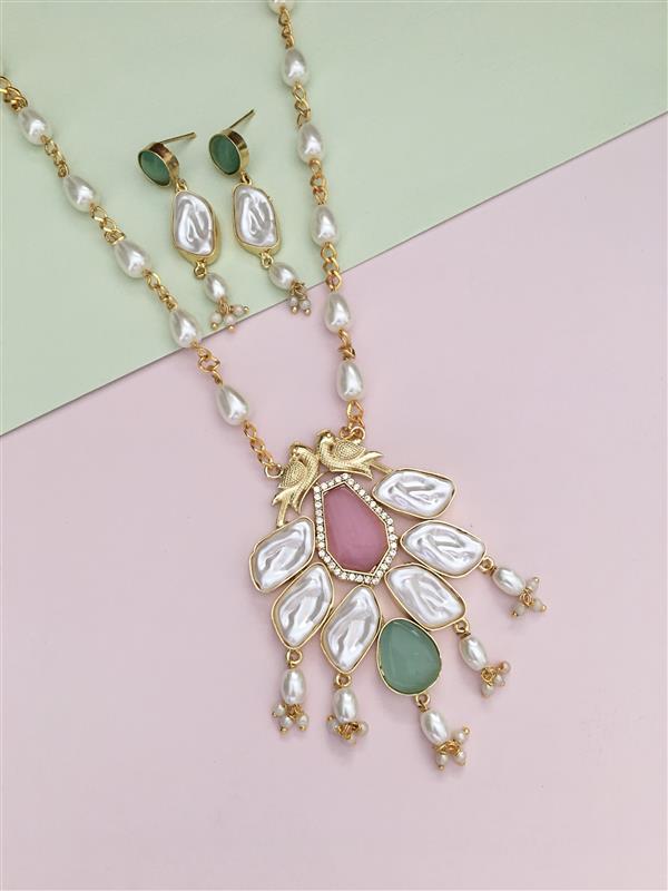Mahek Golden Long Chain Pendant Set
