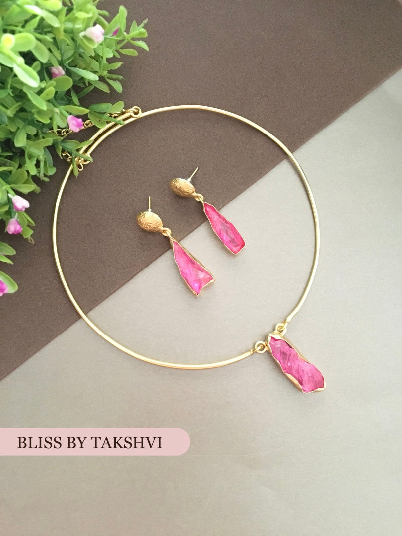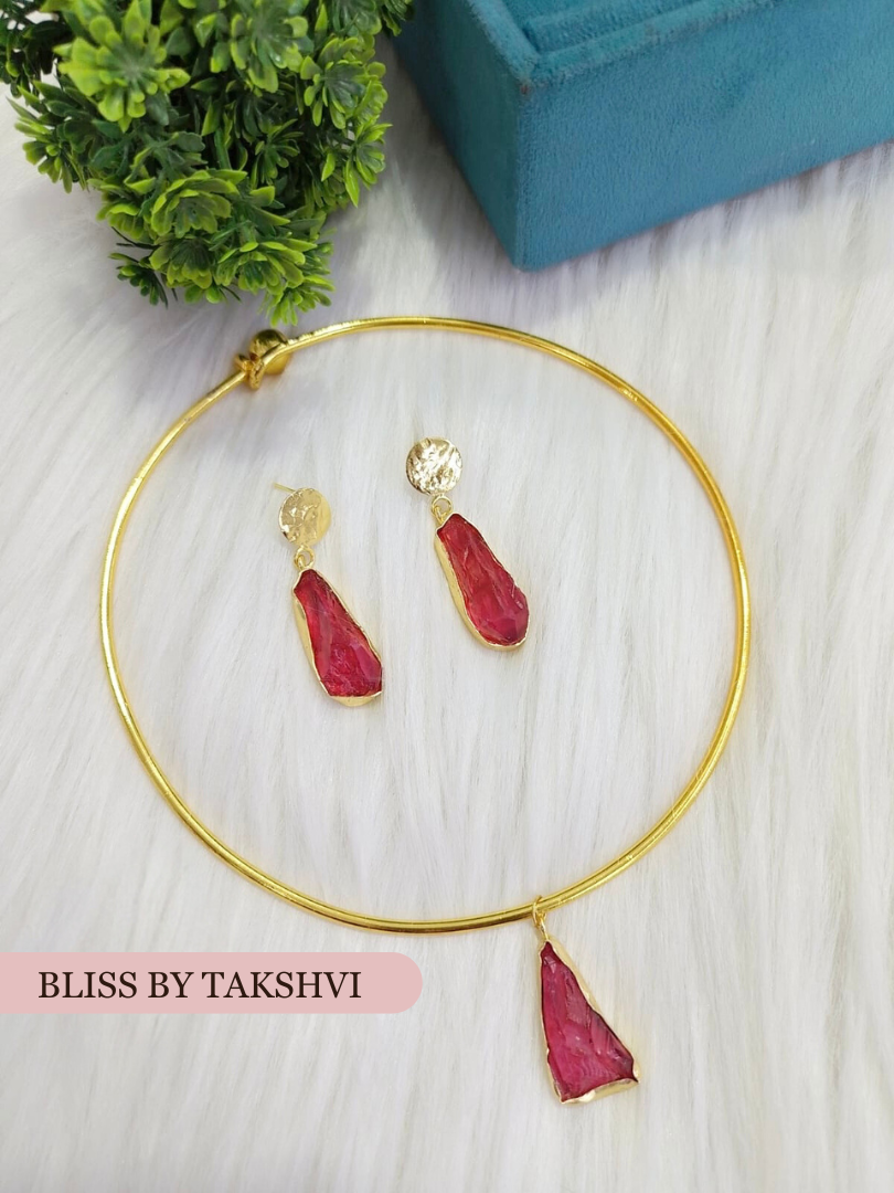 Necklace Style: Traditional hasli band with raw stone embellishments