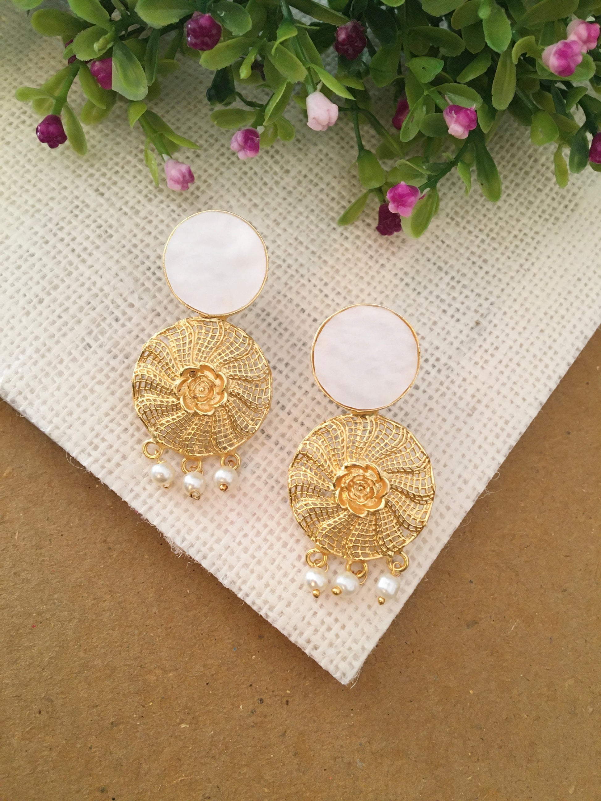 Design Style: Stud earrings in a floral motif with detailed petal craftsmanship