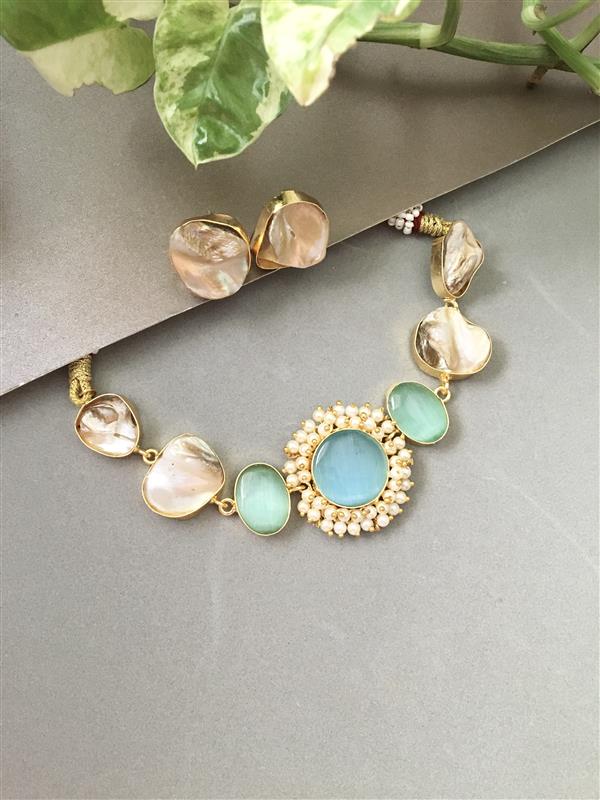 Elegant and radiant, the Monalisa Stone Choker Set brings a soft, luxurious glow to any look. Featuring beautifully polished Monalisa stones set in a graceful choker design with matching earrings, this set is perfect for festive occasions, weddings, or adding a hint of sparkle to your evening wear.