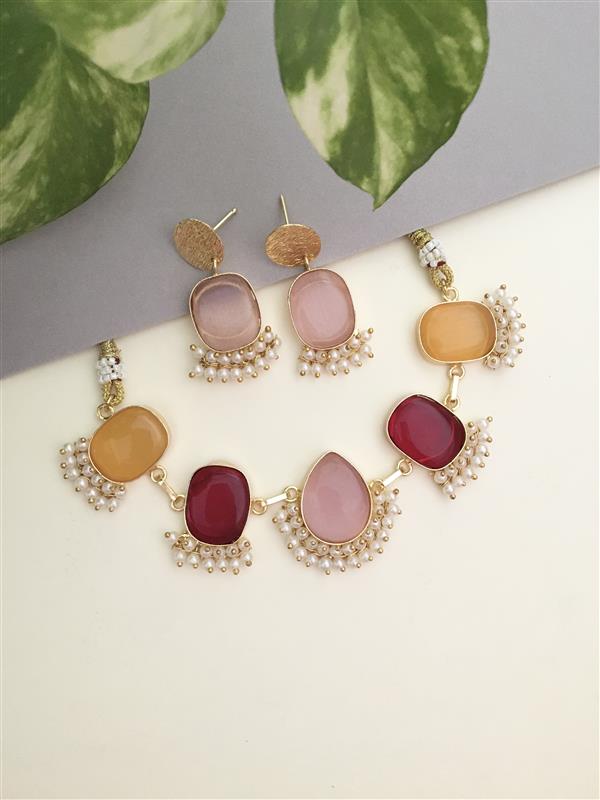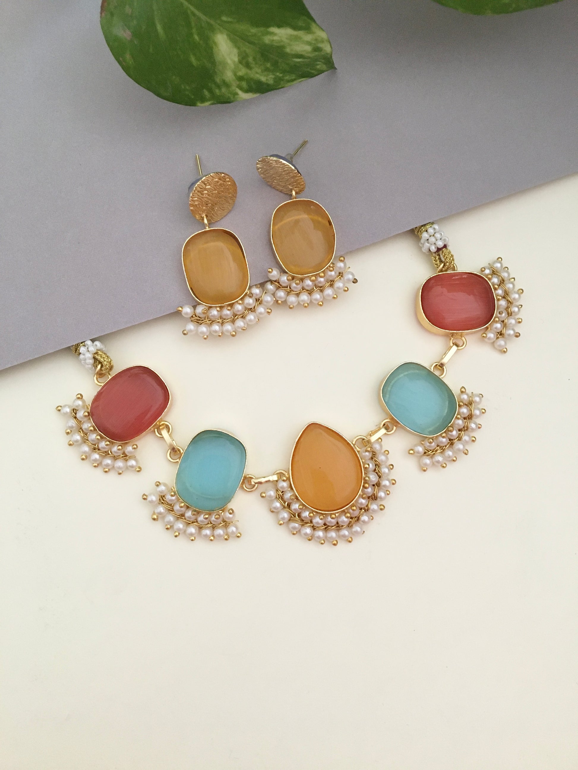 Add a splash of color and elegance to your ensemble with our Multicoloured Glass Stone Choker Necklace. This striking piece features a curated arrangement of vibrant glass stones, delicately set on a sleek, gold-toned base. The bold hues and refined design make it a perfect accessory to elevate both casual and festive outfits.