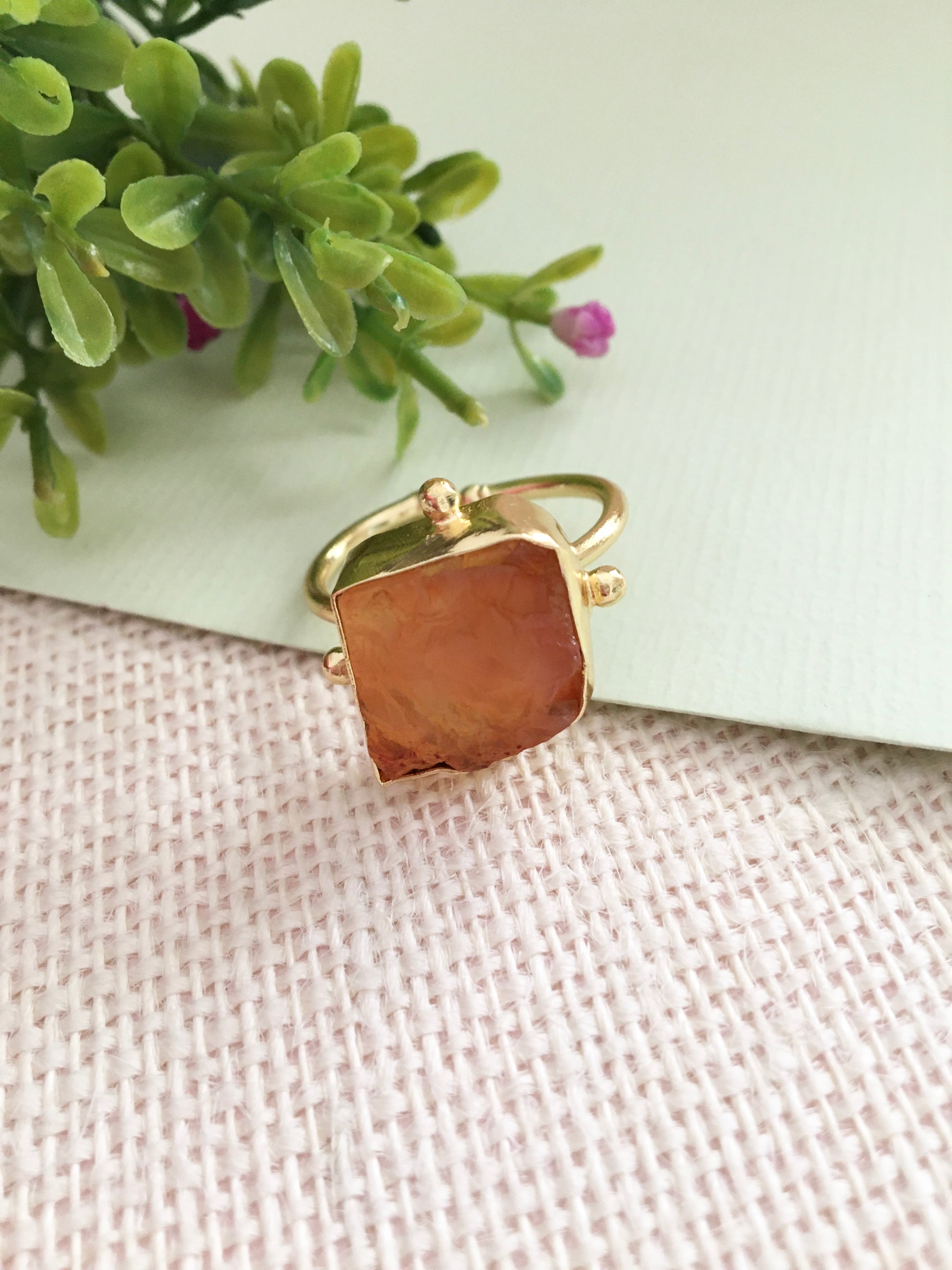 Celebrate the beauty of imperfections with our Natural Raw Stone Rings. Each ring in this collection is a one-of-a-kind piece, featuring a genuine, hand-cut stone in its original, unpolished form. The stones are highlighted by a simple yet elegant gold-toned bezel setting, which beautifully complements their unique shapes and textures.