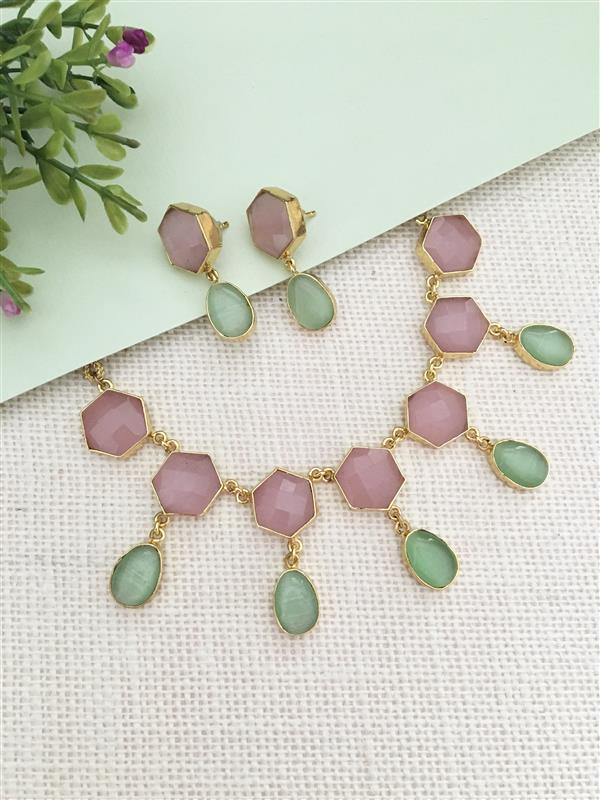 Pastel Hexagon and Teardrop Stone Necklace Set