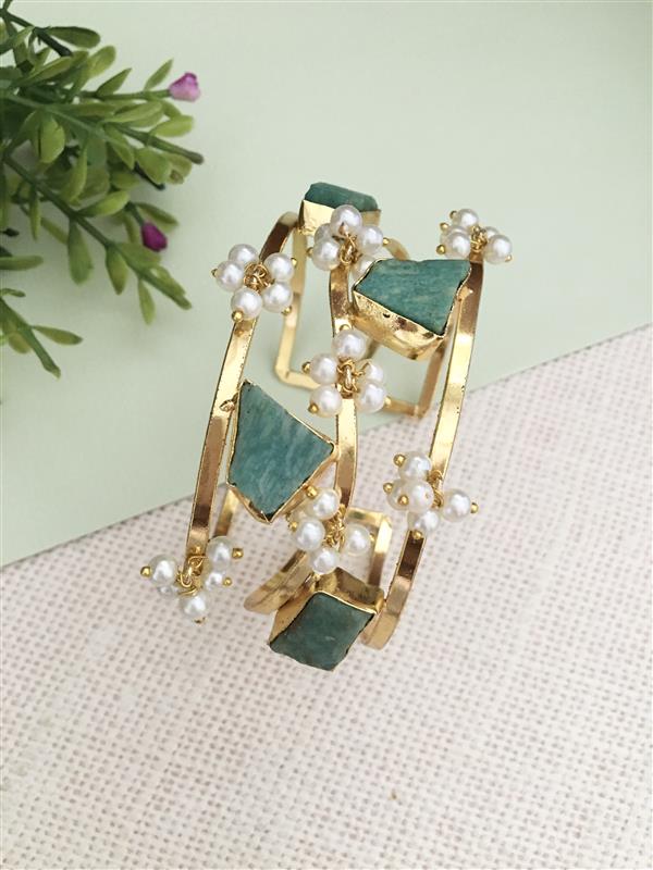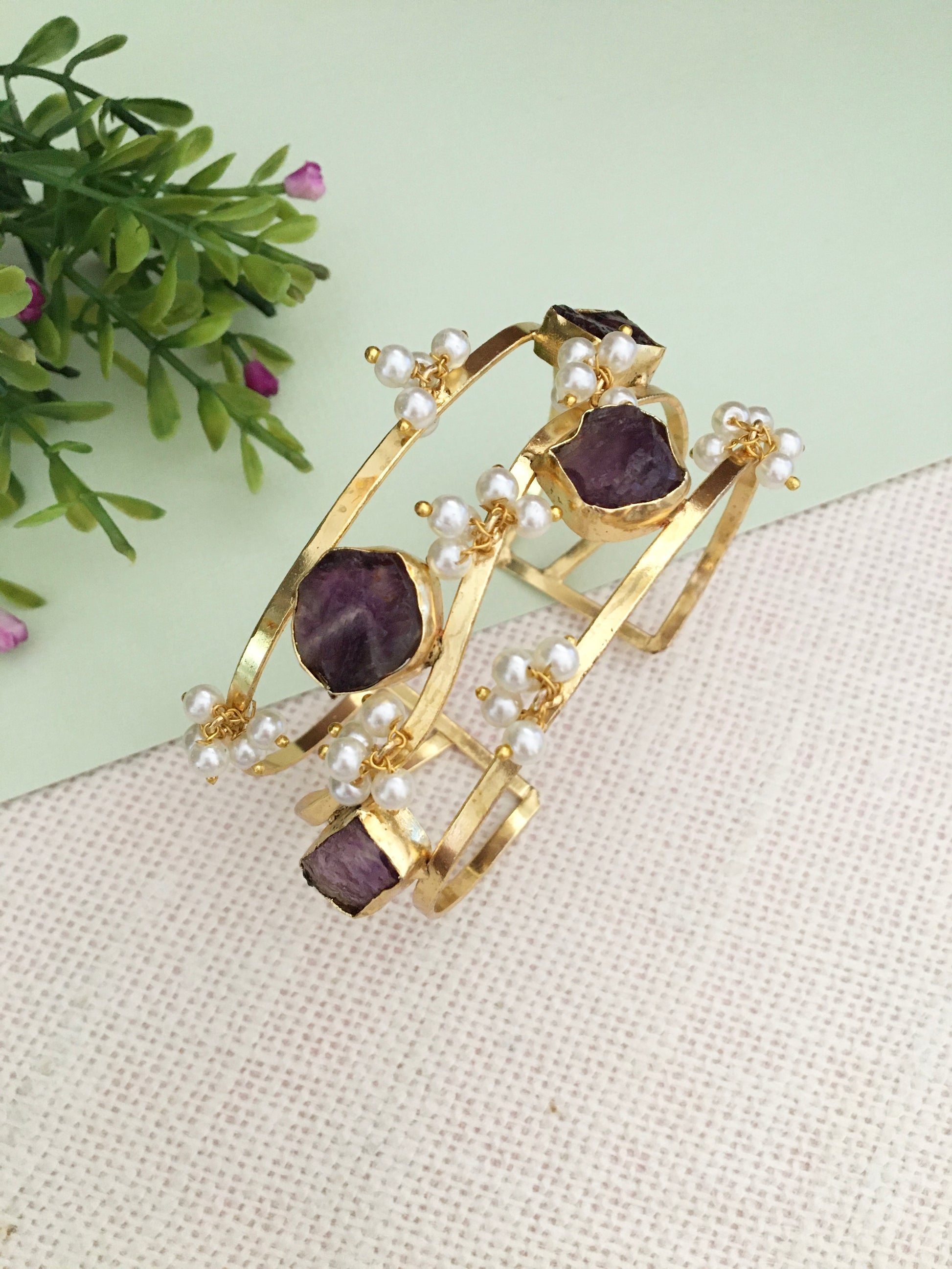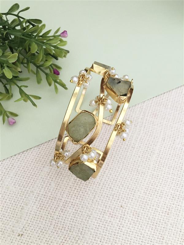 Design Style: Modern cuff bracelet featuring pearl clusters and polki stone accents