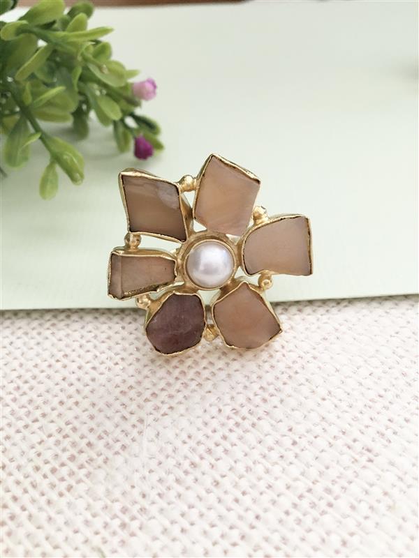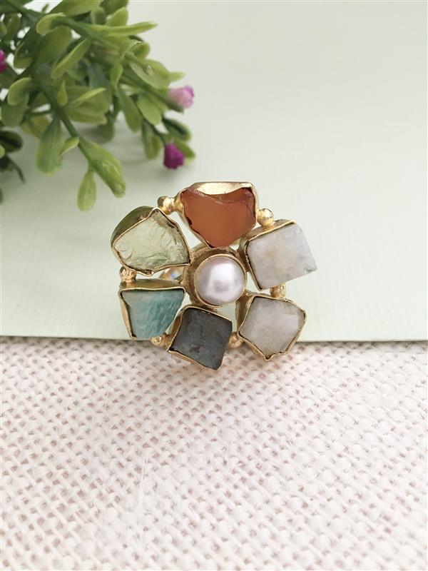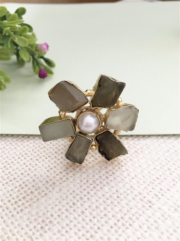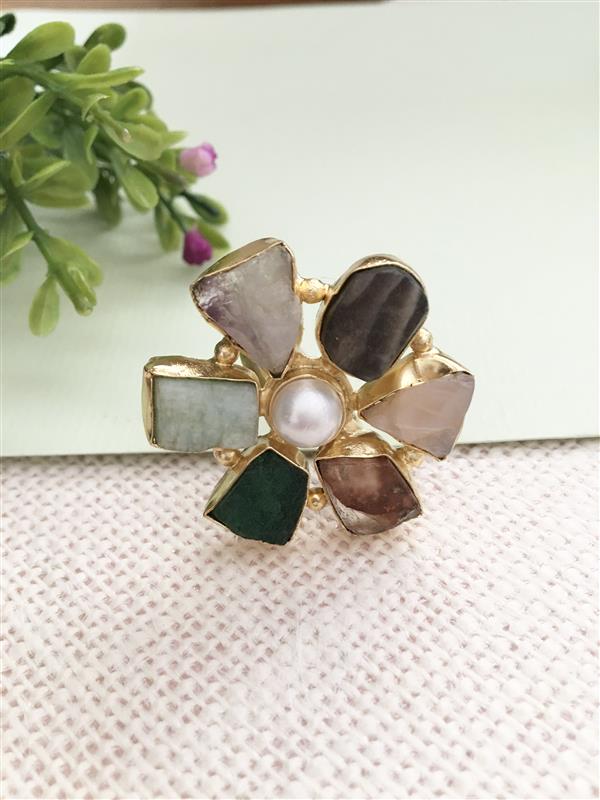 Design Style: Floral statement ring with a central pearl and surrounding raw stones