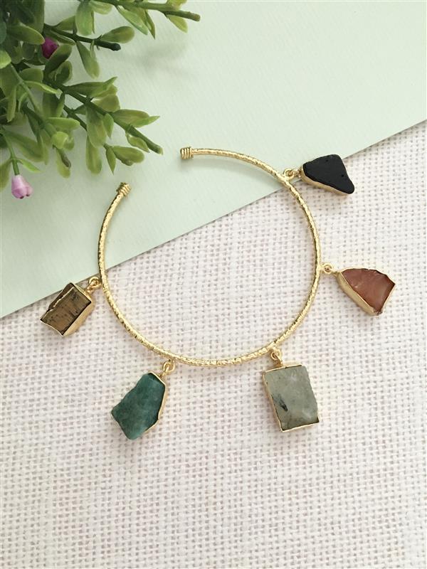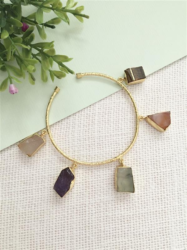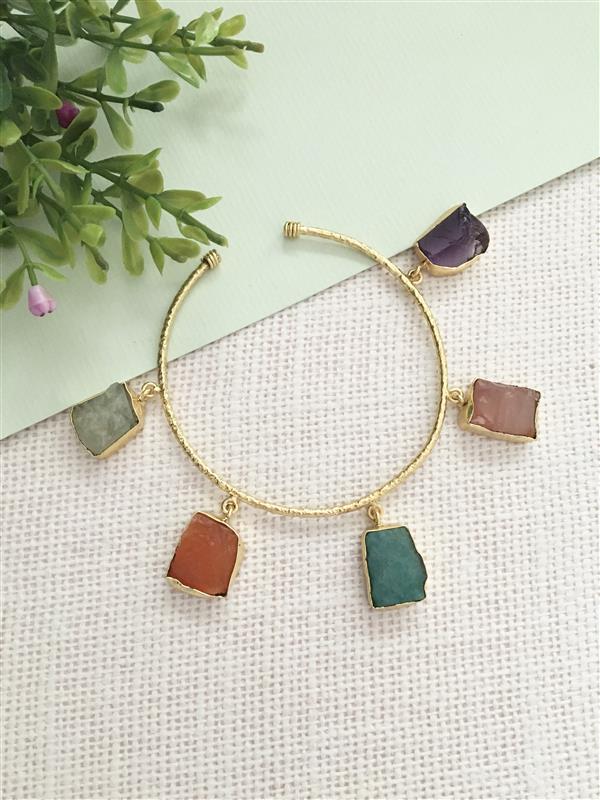 Design Style: Bangle with multiple dangling, multi-colored raw stones