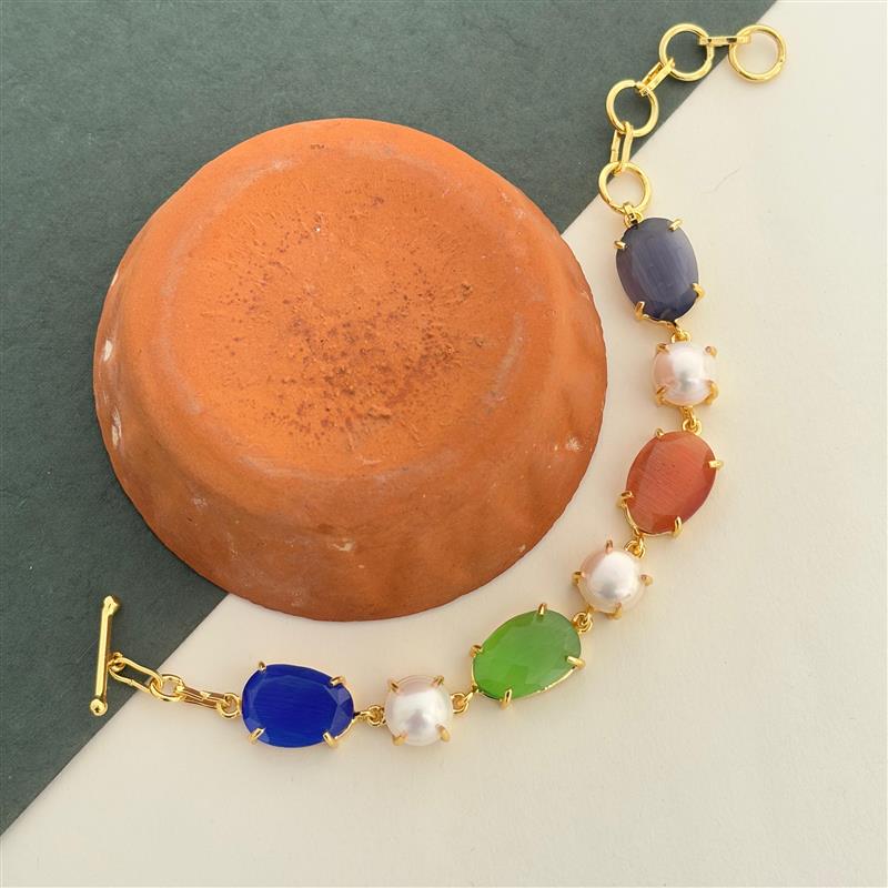 Grace meets glamour in this stunning bracelet featuring real pearls paired with the radiant glow of Monalisa stones. Delicately crafted to blend classic beauty with a modern touch, this bracelet is perfect for adding elegance to your everyday look or a special occasion outfit.