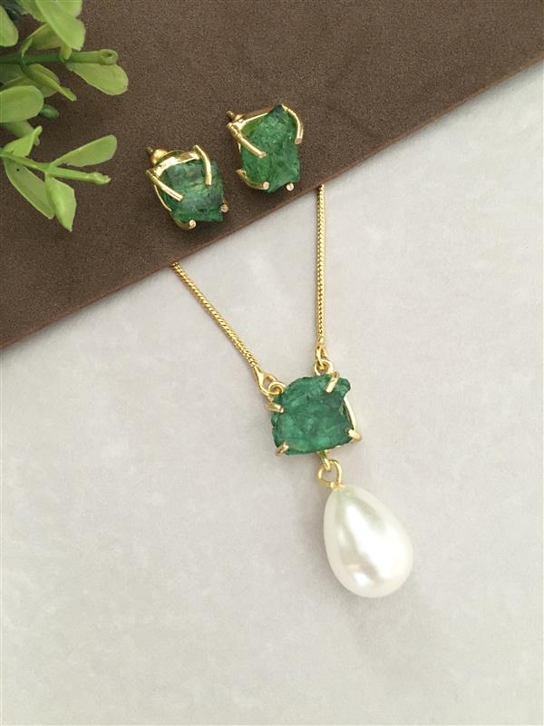 A graceful fusion of rustic charm and timeless elegance, this Rough Stone Real Pearl Pendant Set is a true statement of natural beauty. Featuring a raw, uncut stone paired with a luminous real pearl, the set includes a matching pendant and earrings for a complete, coordinated look. Perfect for special occasions or adding a refined touch to your everyday ensemble.
