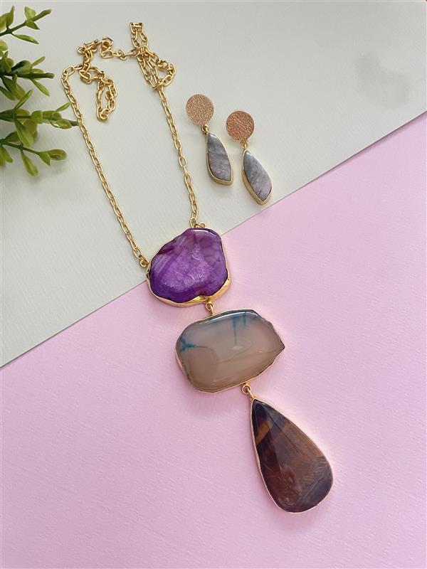 Make a refined style statement with the Samiksha Triple Stone Chain Pendant Set. Featuring three elegant stones set in a sleek chain design, this versatile set blends minimalism and charm—perfect for both everyday wear and special occasions.