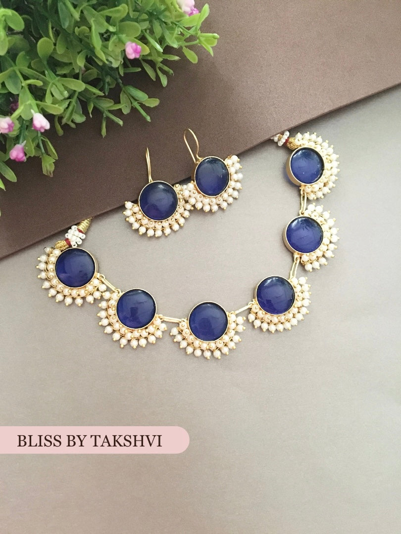 Design: Classic choker style adorned with sparkling Monalisa stones and elegant pearl clusters for a luxurious finish.
