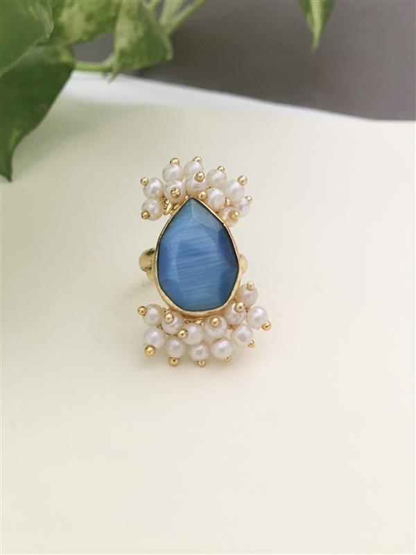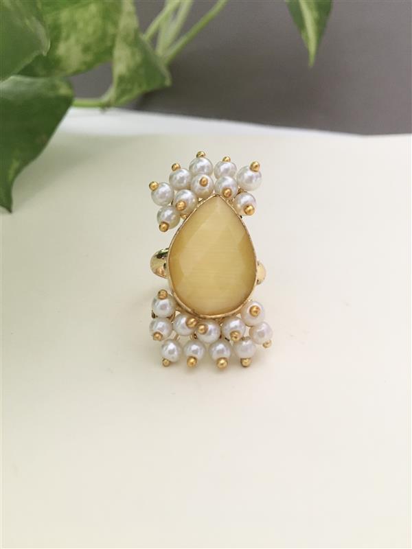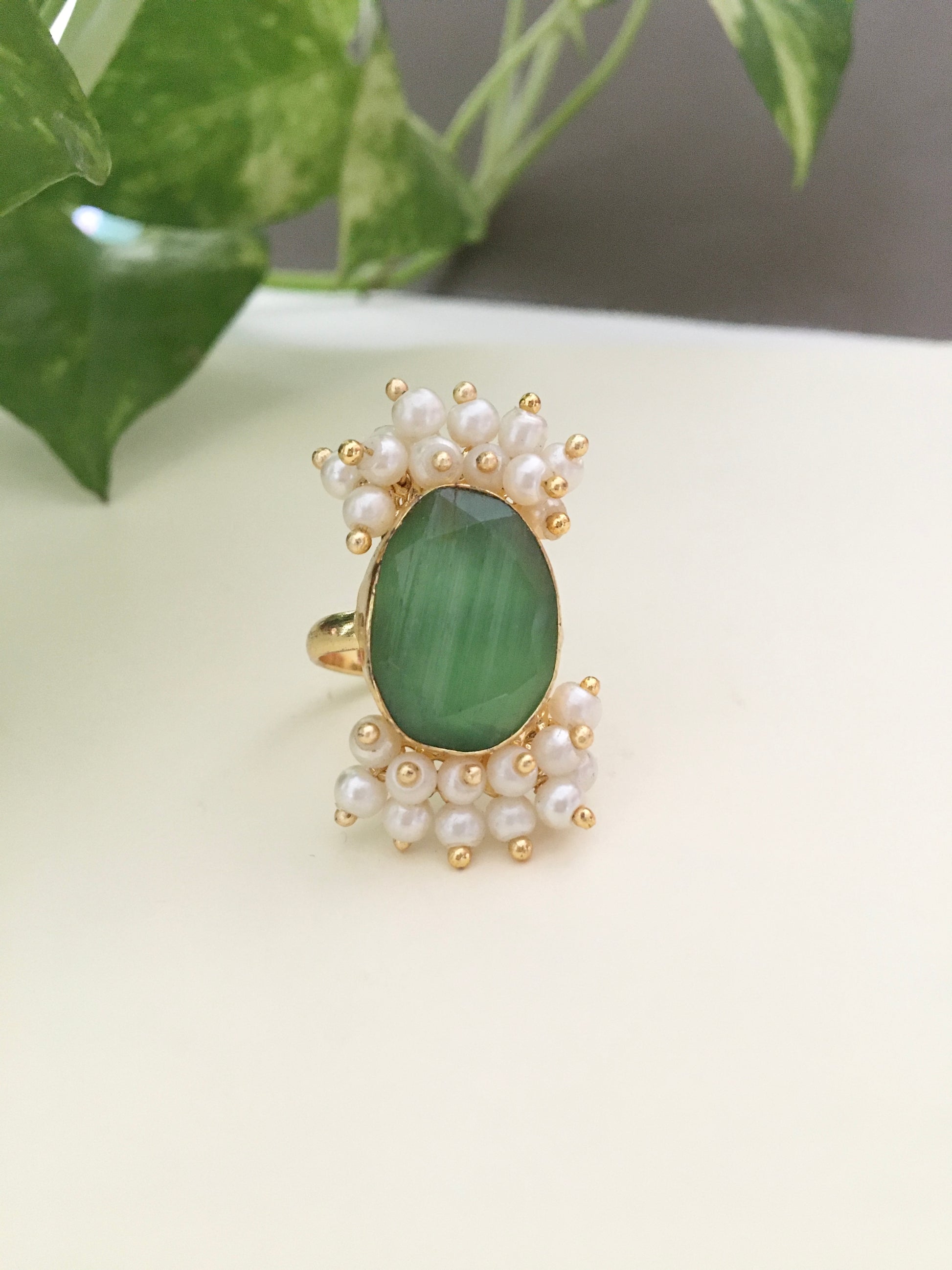 Grace your fingers with the refined elegance of our Single Stone Clusters Pearl Finger Ring. Designed with a striking central stone surrounded by delicate pearl clusters, this ring offers a timeless charm with a modern twist. Its graceful composition makes it a beautiful accent for any ensemble.