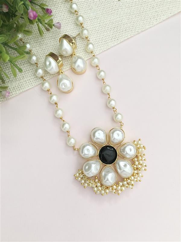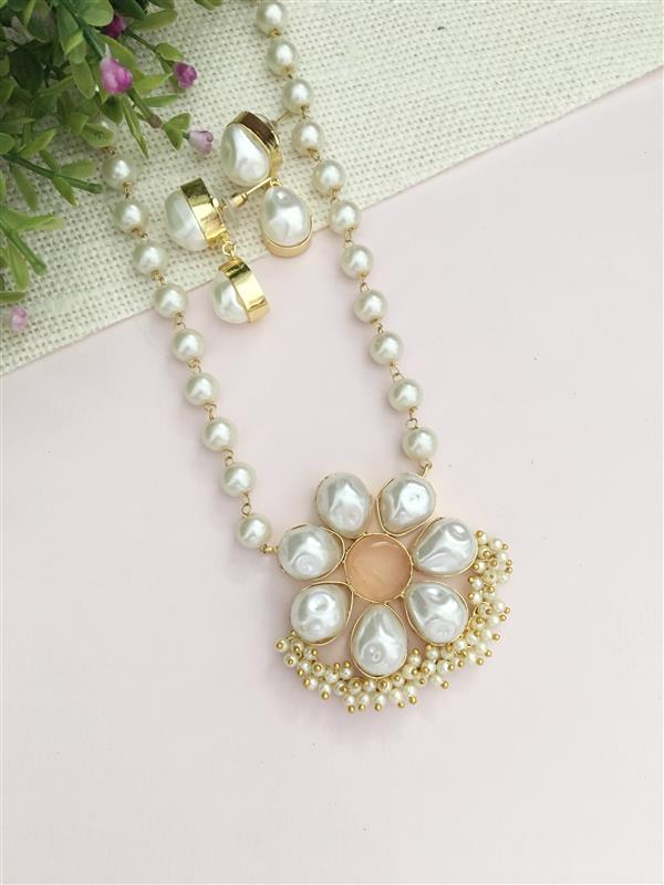 Graceful and timeless, the Tapasya Golden Chain with Pearl Pendant Set is designed to add subtle sophistication to any look. The delicate golden chain paired with a luminous pearl pendant creates an elegant statement, perfect for both everyday wear and special occasions. Complete with matching earrings, this set brings effortless charm to your style.