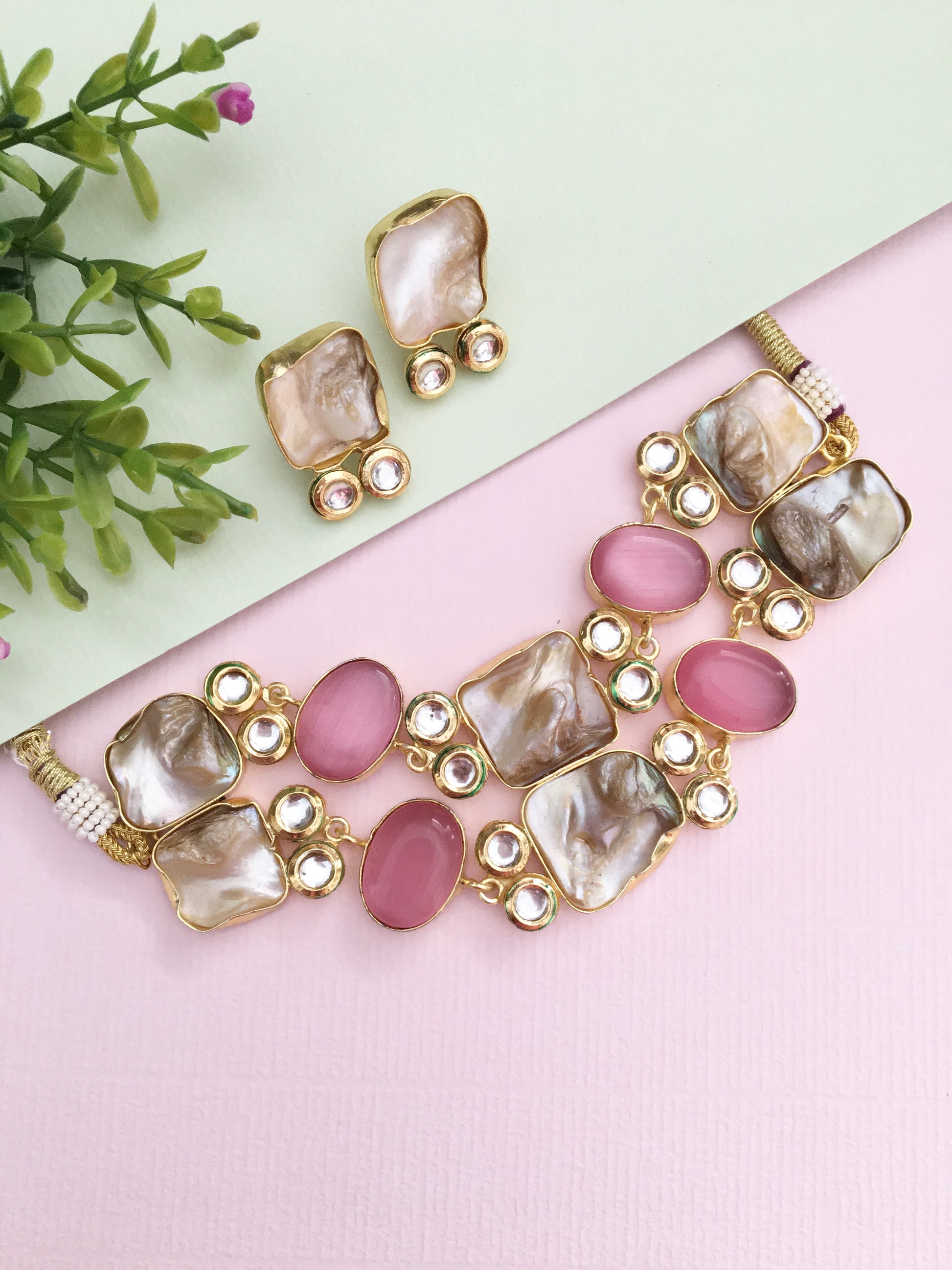 Elevate your elegance with the Veda Double Layer MOP Choker Necklace. Featuring two delicate layers adorned with shimmering Mother of Pearl accents, this timeless design adds a graceful touch to any outfit, making it perfect for both special occasions and everyday sophistication.