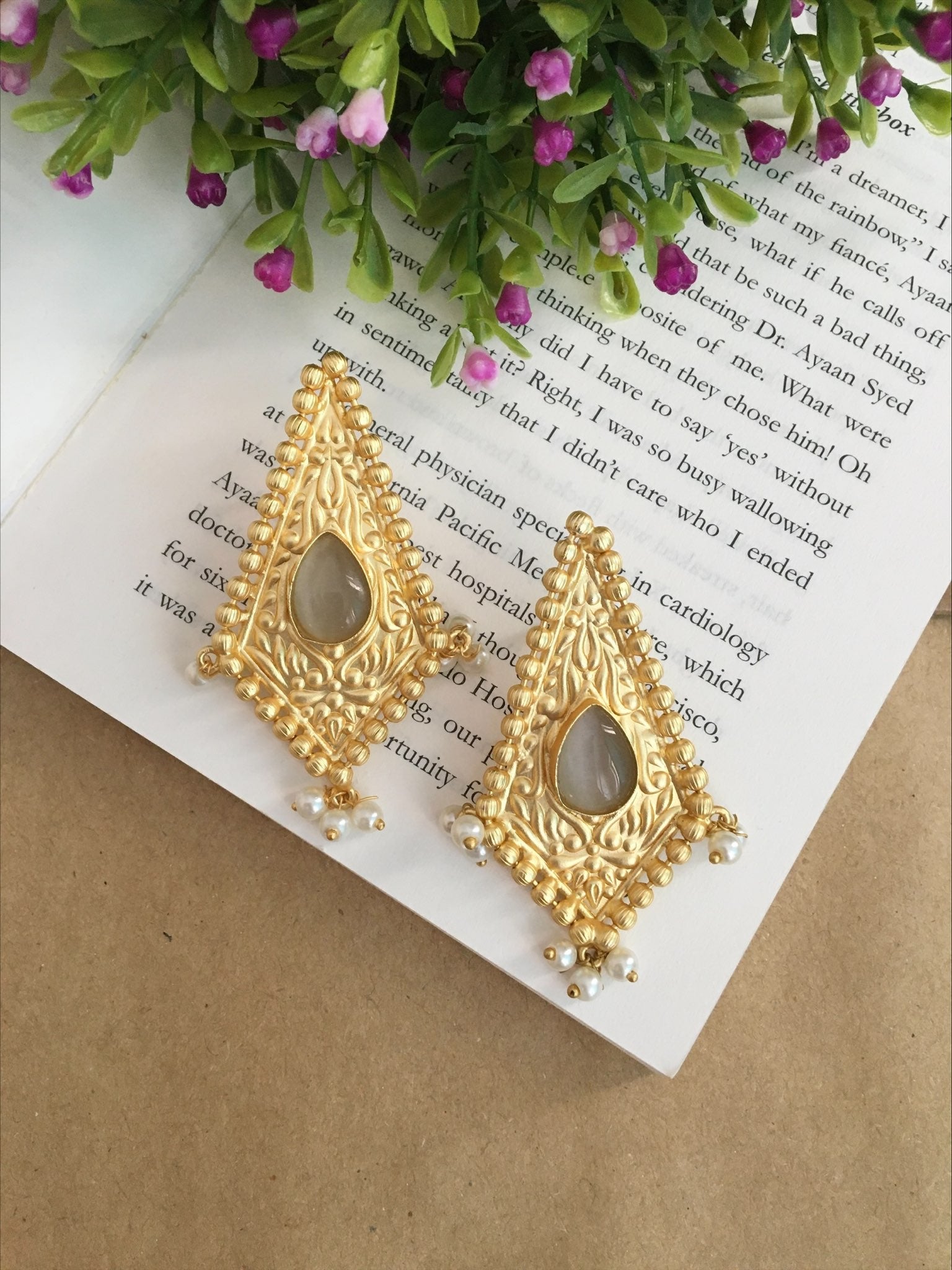 Design Style: Rhombus-shaped earrings with vintage-inspired detailing